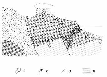 dolina: 1 di soluzione, 2 di crollo, 3 di subsidenza, e 4